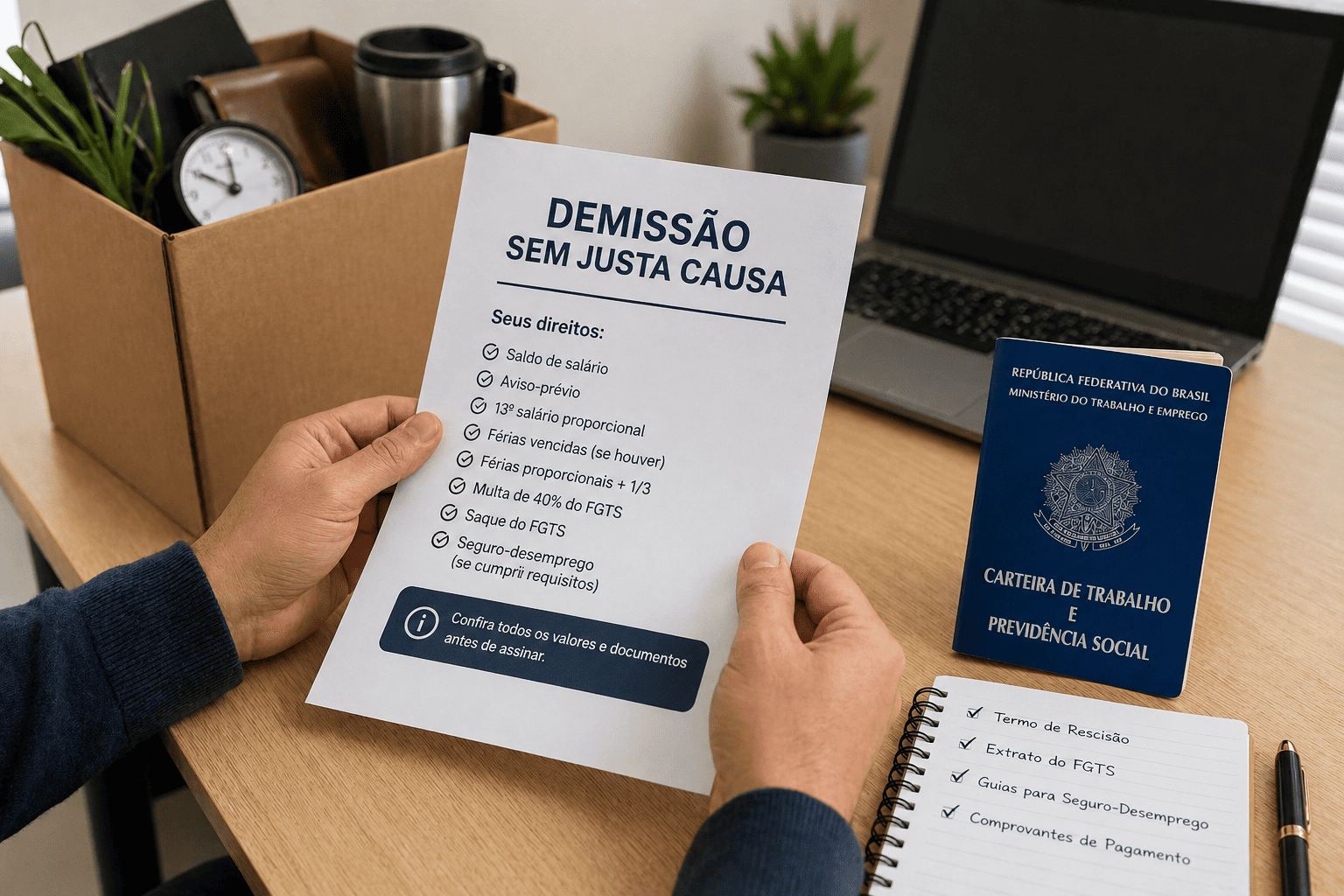 Ao ser demitido, o trabalhador deve verificar com atenção o tipo de rescisão, os valores pagos, os depósitos de FGTS e os documentos entregues pela empresa.